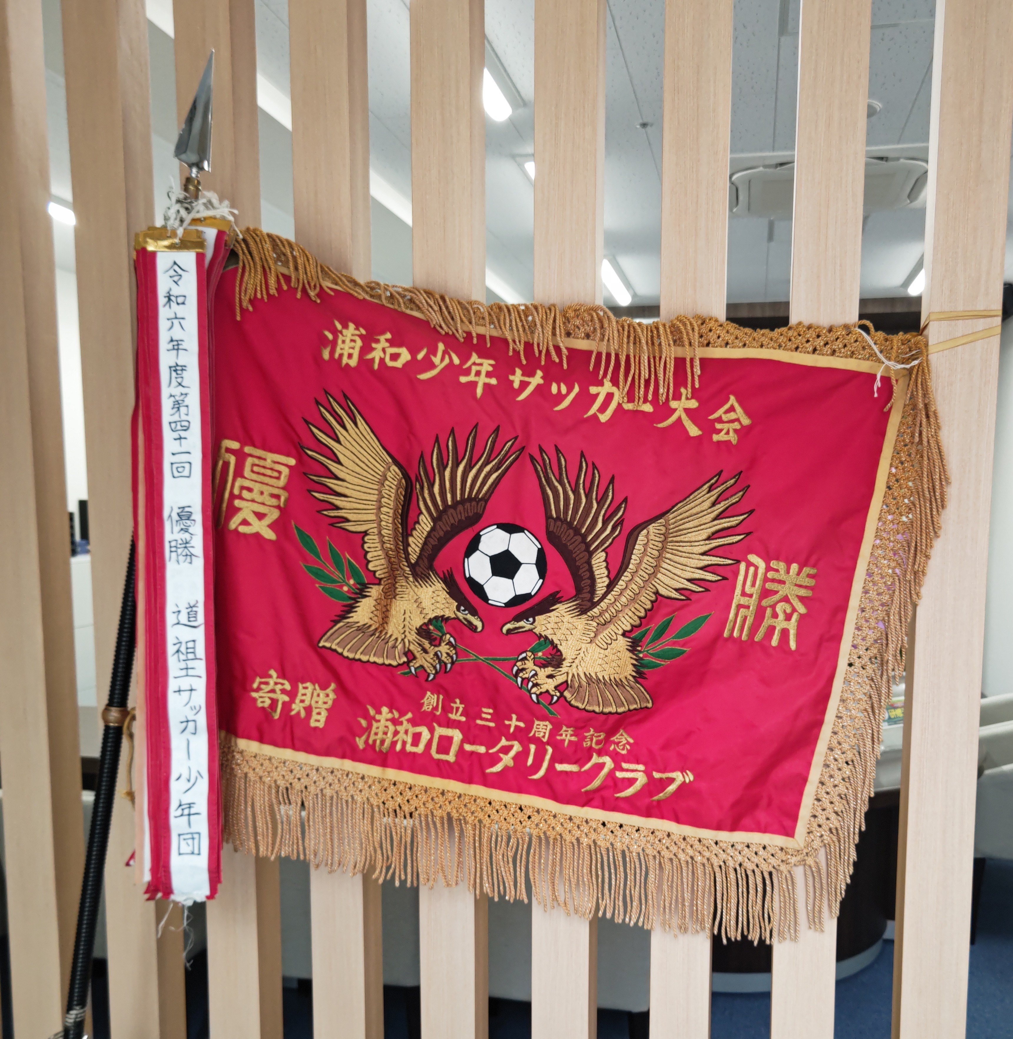 光栄なことに、華やかで重みのある豪華な優勝旗をお預かりしました。