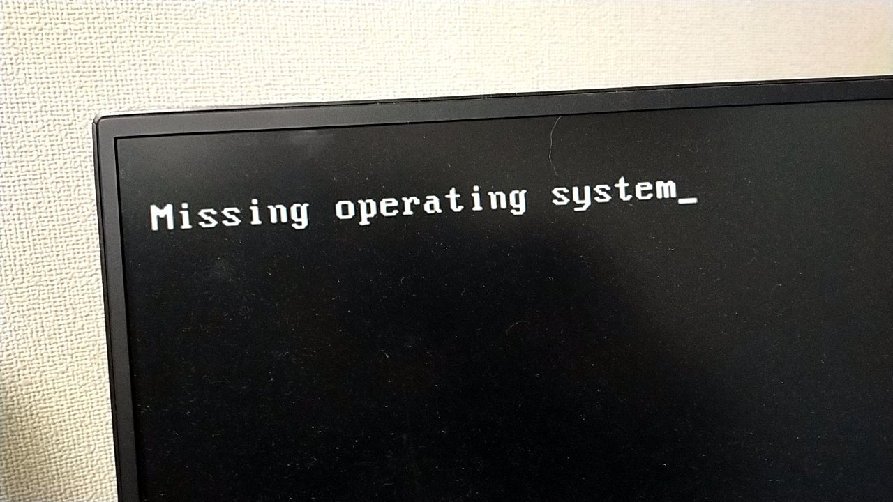 (OSが飛んだ時の起動画面です。真っ暗な画面は心にくるものがあります(´・ω・`))