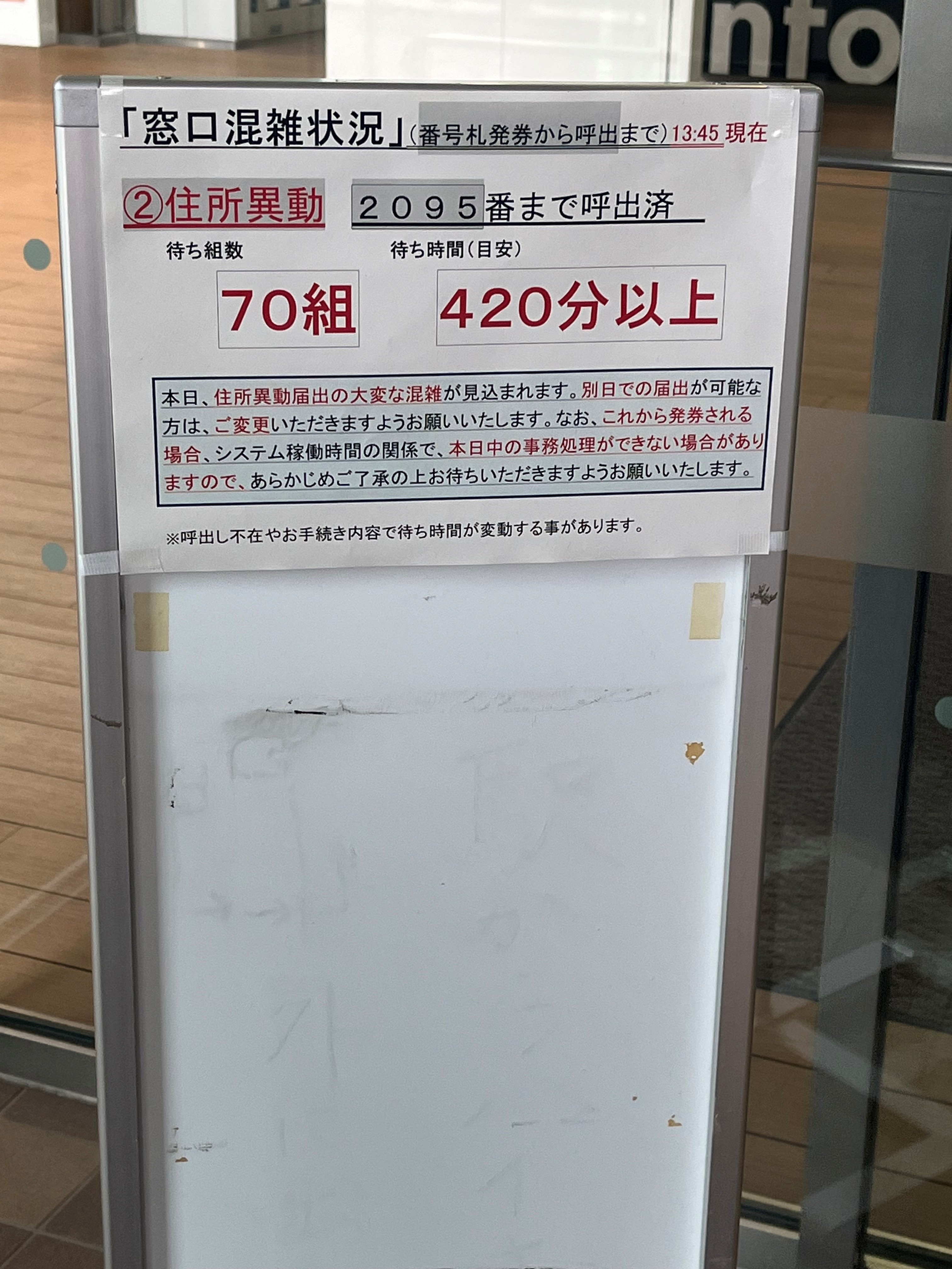 先日、年度末に南区役所へ行ったら「420分待ち」という看板が出ていて驚きました!