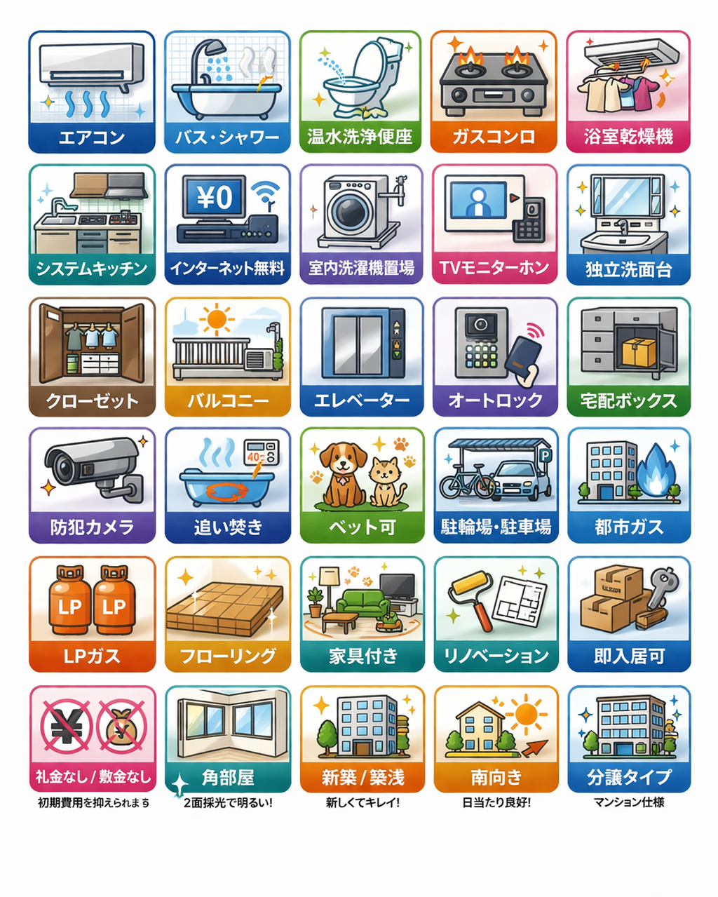 いろんな不動産屋さんの募集図面を見ると、大手の不動産屋さんなどは設備などがアイコンで表示されていてとても分かりやすくなっているんですよね。